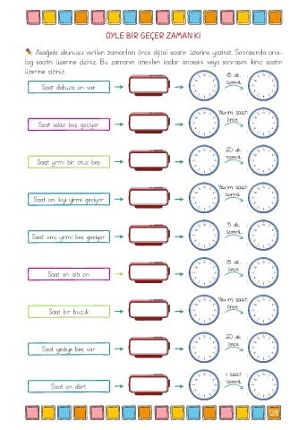 Aşağıda okunuşu verilen zamanları önce dijital saatin üzerine yazınız. Sonrasında ana-