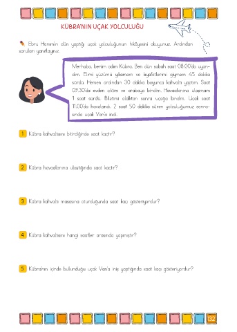 5 Kübra’nın içinde bulunduğu uçak Van’a iniş yaptığında saat kaçı gösteriyordur?