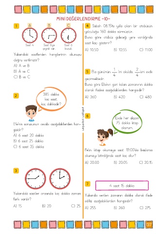 çeyrek var. buçuk. A) 10.50 B) 10.55 C) 11.00
