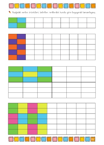 Aşağıdaki verilen örüntüleri, belirtilen renklerdeki kurala göre boyayarak tamamlayınız. 162