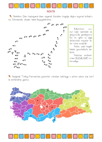 Aşağıdaki Türkiye Haritası’nda gösterilen noktaları belirleyip o şehrin adının baş harfi
