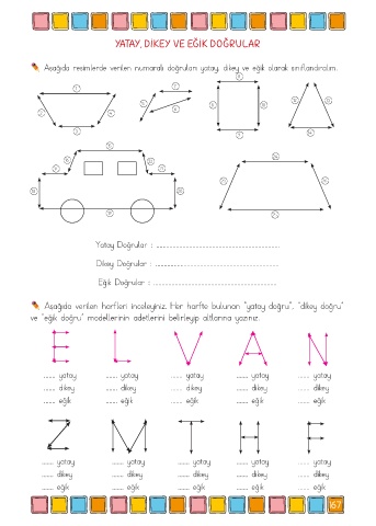 Aşağıda resimlerde verilen numaralı doğruları yatay, dikey ve eğik olarak sınıflandıralım.