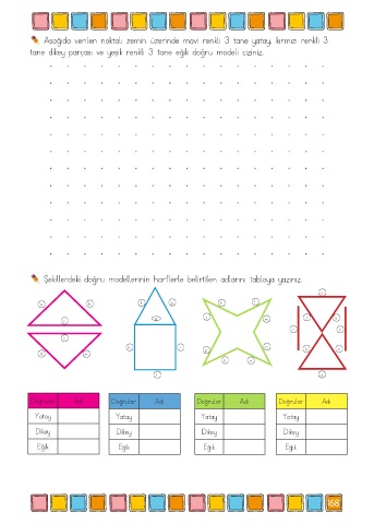 Şekillerdeki doğru modellerinin harflerle belirtilen adlarını tabloya yazınız.