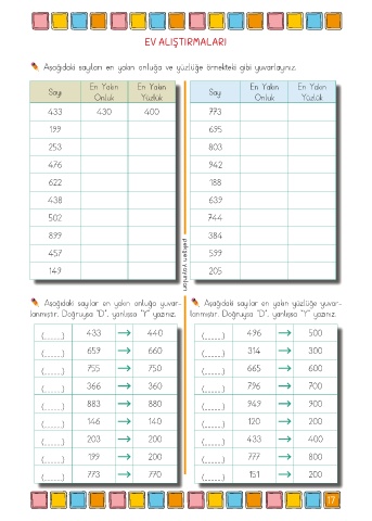 Aşağıdaki sayılar en yakın onluğa yuvar- Aşağıdaki sayılar en yakın yüzlüğe yuvar-