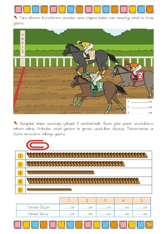 tahmin ediniz. Ardından cetvel yardımı ile gerçek uzunlukları ölçünüz. Tahminlerinizi ve