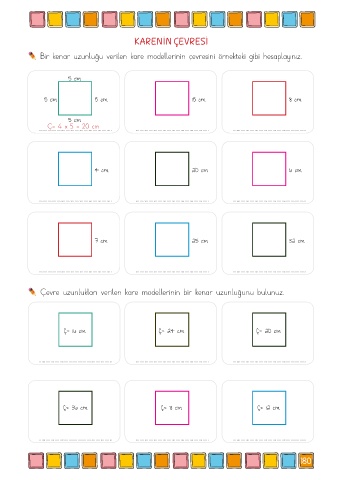 Bir kenar uzunluğu verilen kare modellerinin çevresini örnekteki gibi hesaplayınız.