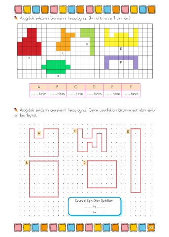 Aşağıdaki şekillerin çevrelerini hesaplayınız. (İki nokta arası 1 birimdir.)