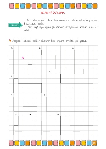 Alanı kâğıt veya fayans gibi standart olmayan ölçü araçları ile de öl-