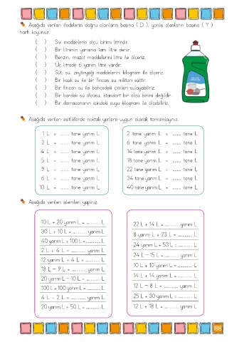 4 L - 2 L = …….......... yarım L 25 L + 30 yarım L = …….......... L