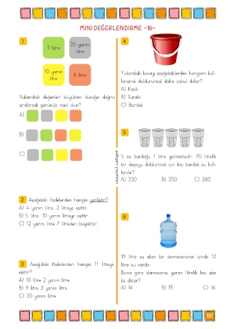 B) 9 litre 3 yarım litre A) 14 B) 15 C) 16
