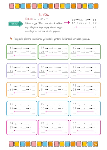 ÖRNEK: 65 - 37 = ? 65 65+3 68