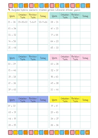 Aşağıdaki toplama işlemlerini örnekteki yöntemi kullanarak zihinden yapınız.