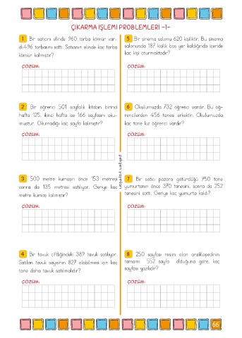 metre kumaş kalmıştır? tanesini sattı. Geriye kaç yumurta kaldı?