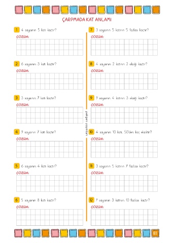 6 5 sayısının 8 katı kaçtır? 12 7 sayısının 3 katının 10 fazlası kaçtır?