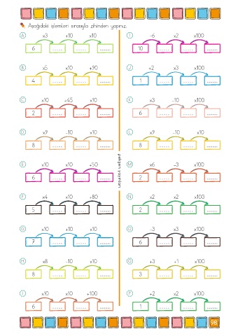 Aşağıdaki işlemleri sırasıyla zihinden yapınız.
