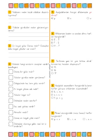 1 Yıldızların neden küçük oldukları düşünü- 5 Aşağıdakilerden hangisi alfabemizde yer