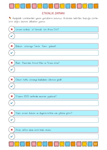 Aşağıdaki cümlelerdeki yazım yanlışlarını bulunuz. Ardından belirtilen boşluğa cümle-