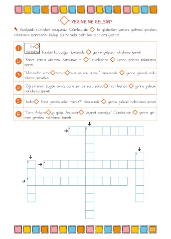 noktalama işaretlerini bulup bulmacada belirtilen alanlara yazınız.