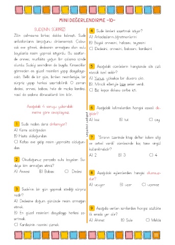 cak eve gitmek, dedesinin armağanı olan sulu C) Dedesini, annesini, babasını, kardeşini