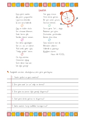 2. Şiire göre saat “çın çın” edip ne dermiş?