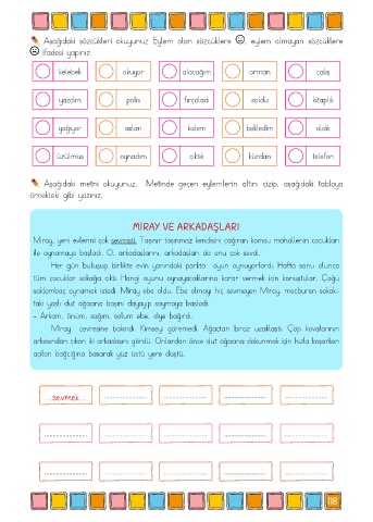 Aşağıdaki sözcükleri okuyunuz Eylem olan sözcüklere , eylem olmayan sözcüklere