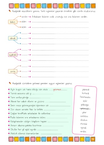 Aşağıdaki cümlelere gelmesi gereken uygun eylemleri yazınız.