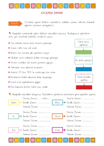 Cümlede eylemi bildiren sözcüklerin aldıkları zaman eklerine bakarak