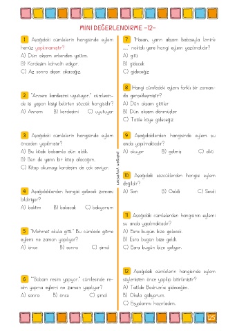 12 Aşağıdaki cümlelerin hangisinde eylem