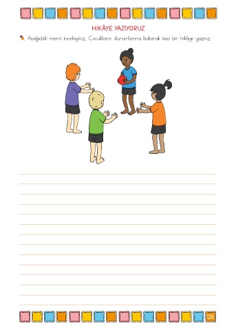 HİKÂYE YAZIYORUZ Aşağıdaki resmi inceleyiniz. Çocukların durumlarına bakarak kısa bir hikâye yazınız. 126