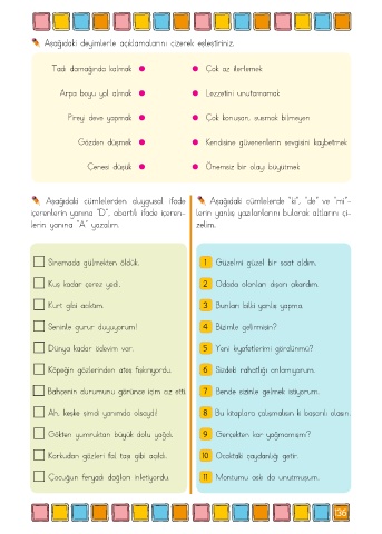 Aşağıdaki deyimlerle açıklamalarını çizerek eşleştiriniz.