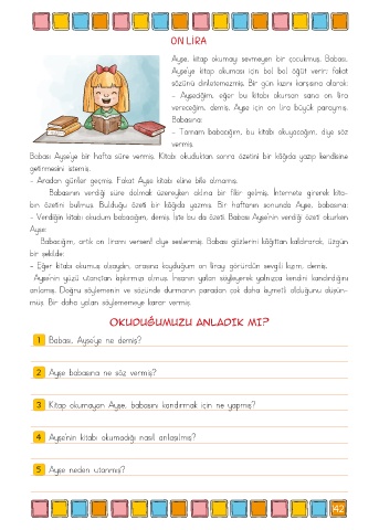 - Ayşeciğim, eğer bu kitabı okursan sana on lira