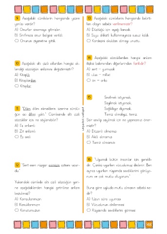 14 Aşağıdaki sözcüklerden hangisi anlam