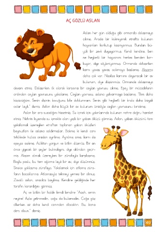 avlar layık.” demiş. Aslan daha büyük bir av bulurum ümidiyle ceylan yavrusunu bırakmış.