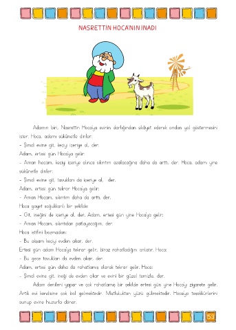 - Git, ineğini de içeriye al, der. Adam, ertesi gün yine Hoca’ya gelir:
