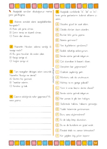 Aşağıdaki soruları okuduğunuz metne 5 Aşağıdaki cümlelerde “ki”, “de” ve “mi”-