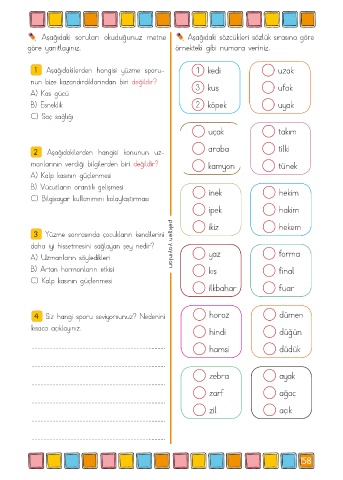 Aşağıdaki soruları okuduğunuz metne Aşağıdaki sözcükleri sözlük sırasına göre