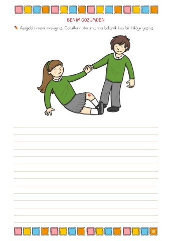 BENİM GÖZÜMDEN Aşağıdaki resmi inceleyiniz. Çocukların durumlarına bakarak kısa bir hikâye yazınız. 18
