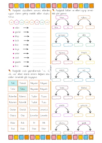 Aşağıdaki sözcüklerin sonuna eklerden Aşağıdaki kökleri ve ekleri ayırıp örnek-