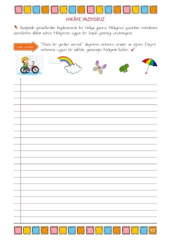 işaretlerine dikkat ediniz. Hikâyenize uygun bir başlık yazmayı unutmayınız.