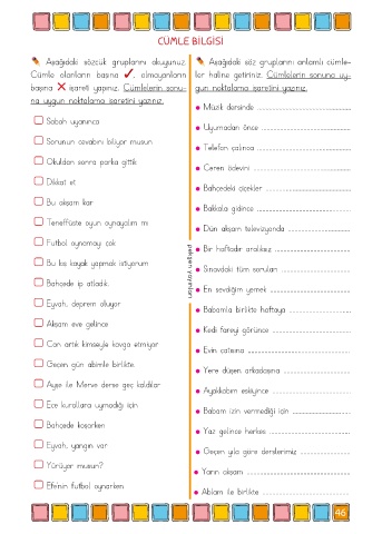 başına işareti yapınız. Cümlelerin sonu- gun noktalama işaretini yazınız.