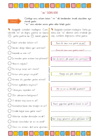 lelerdeki “mi” eki doğru yazılmış ise başına zılmış olan “mi” eklerinin altını örnekteki gibi