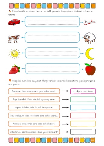 Aşağıdaki cümleleri okuyunuz. Hangi varlıklar arasında karşılaştırma yapıldığını yanla-