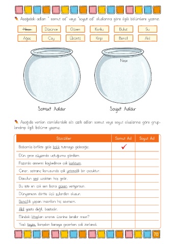 Aşağıda verilen cümlelerdeki altı çizili adları somut veya soyut oluşlarına göre grup-