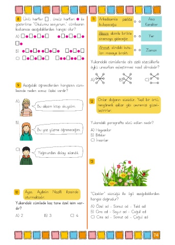 10 Ayşe, Aydın’ın Nazilli ilçesinde “Çiçekler” sözcüğü ile ilgili aşağıdakilerden