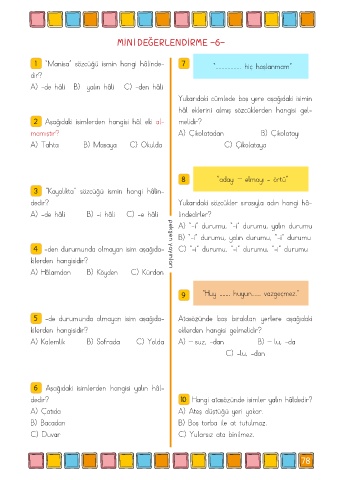1 “Manisa” sözcüğü ismin hangi hâlinde- 7 “................. hiç hoşlanmam”