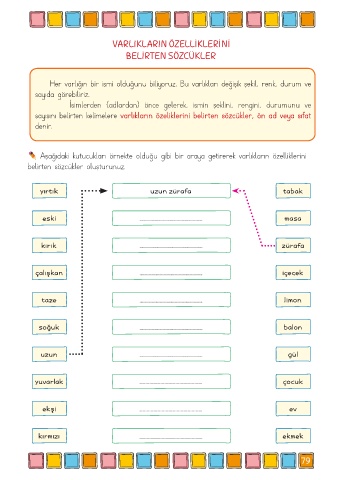 Aşağıdaki kutucukları örnekte olduğu gibi bir araya getirerek varlıkların özelliklerini