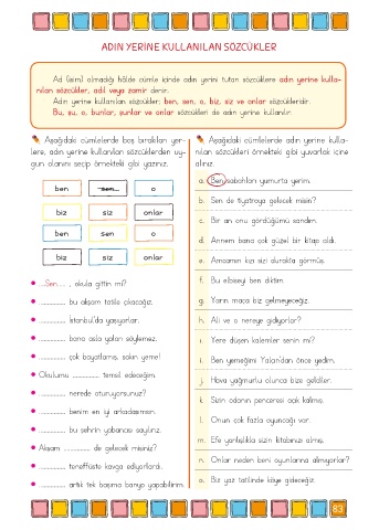 lere, adın yerine kullanılan sözcüklerden uy- nılan sözcükleri örnekteki gibi yuvarlak içine