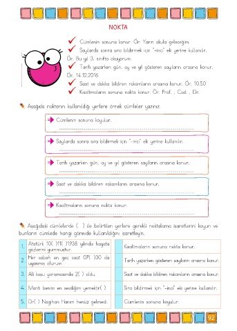 Aşağıda noktanın kullanıldığı yerlere örnek cümleler yazınız.