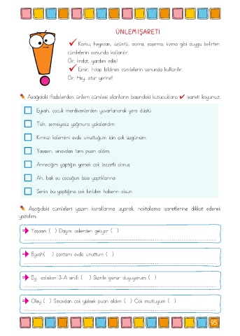 Aşağıdaki ifadelerden ünlem cümlesi olanların başındaki kutucuklara 4 işareti koyunuz.