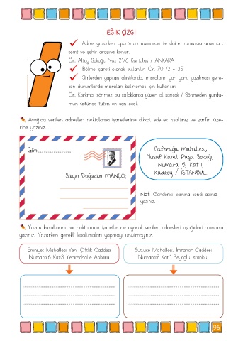 Aşağıda verilen adresleri noktalama işaretlerine dikkat ederek kısaltınız ve zarfın üze-